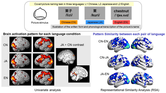 fMRIを用いて、言語処理の神経メカニズムや多言語話者における言語情報の脳内表象を研究しています。課題時の脳機能マッピングでは、語生成課題や音韻・意味連合課題を用いて、語彙検索や言語産出に関わる制御的プロセスを評価します。また、安静時fMRIおよび機能的結合解析により、課題に依存しない内在的言語ネットワークの特性を明らかにします。これらを統合することで、言語表象の局所およびネットワークレベルでの組織化と、多言語経験、習得年齢、言語熟達度等といった要因の影響を検討し、言語機能の神経基盤および可塑性の理解を深めることを目指しています。